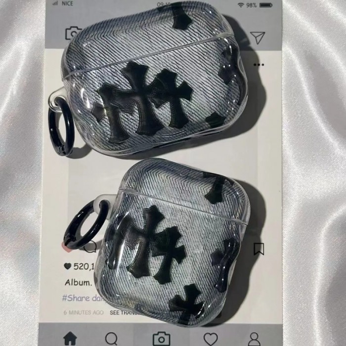 落下防止 メンズ レディースクロムハーツairpods Pro3 4 pro2ケース シリコンクロムハーツairpods Pro3/pro2/4 3ケース ストラップ付き、上品な雰囲気の Chrome Heartsブランド Airpods Pro3/4/3/Pro2ケース 保護ブランドクロムハーツAirpods Pro3/Pro2/3 4メンズ レディースケース